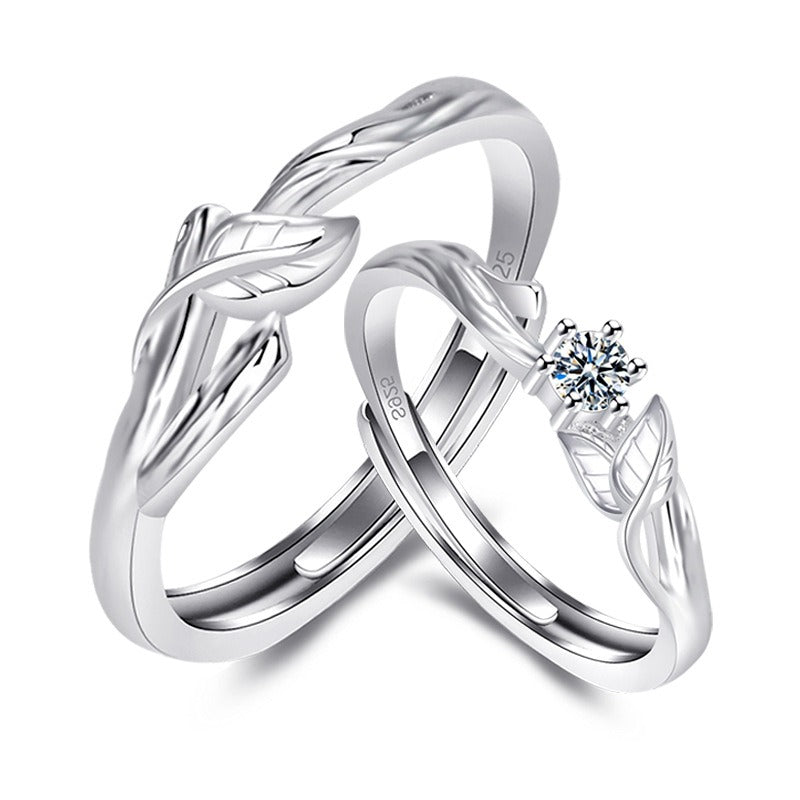 Couple Promise Rings – Adjustable Leaf Matching Rings for Men & Women | Valentine’s Day Gift Jewelry